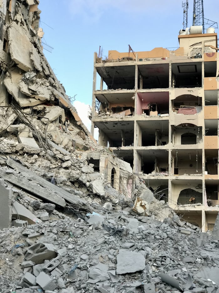 Rescue workers scrambled to find survivors amidst the debris, battling flames and sifting through remains of what was once a residential block. An AFP video captured the chaotic scene as emergency responders rushed a survivor to an ambulance while others attempted to extinguish the smoldering fire engulfing the area.