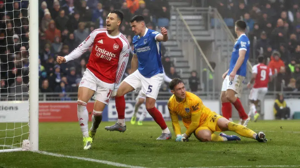 The Gunners were shocked early on at a lively Fratton Park, as a goal from Colby Bishop in the third minute saw them go a goal down after Kepa Arrizabalaga could only parry the first shot, but it was the rebound that the striker pounced on. The goal briefly lifted the home crowd, but Mikel Arteta’s team was quick to respond.